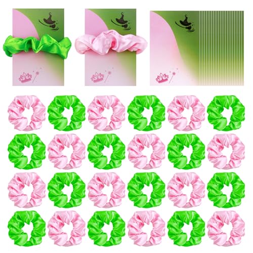 ウィキッドヘアアクセサリー24個セットです。ピンクとグリーンのシュシュ、ウィッチプリンセスカード付き。パーティーや記念品として最適な柔らかいヘアタイ。女性のおしゃれにぴったり。