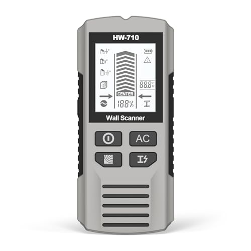 5in1モードの下地センサー。金属や木材を区別し、深度表示や電線警告機能を搭載。高感度で簡単操作、校正機能付き。隠れた金属やACケーブルを検出。電池は含まれていません。