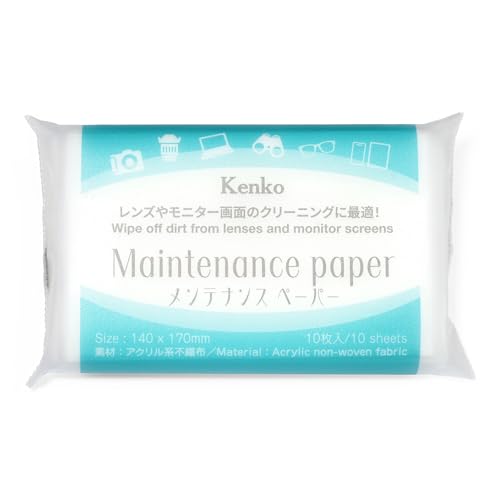 ケンコーのメンテナンスペーパーは、10枚入りの乾式ティッシュタイプです。サイズは140×170mm、マイクロファイバー配合で、効果的な清掃が可能です。