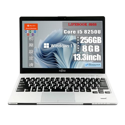 LIFEBOOK S938は、13.3インチのノートパソコン。第8世代Core i5、8GBメモリ、256GB SSDを搭載。Windows 11とMS Office 2019 H&Bが付属。無線LAN、HDMI、WEBカメラも完備。