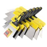 DrivEx パテベラ 6点セットは、ステンレス製の左官用ヘラで、サイズは9.7/15.5/19.5/24/29.5/34.5cmです。滑り止め付きでプロ仕様、補修や内装仕上げに最適なツールです。