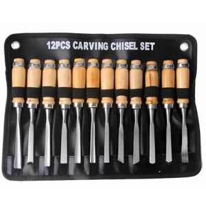 Powanfityの木工用ノミセット。4本組(6/12/19/25mm)で、クロムバナジウム鋼製。DIYや木彫りに最適な大工道具。面取りや精密な木工作業に対応。