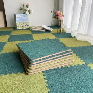 ジョイントマット タイルカーペット カーペットタイル ダックグリーン+绿 30*30*厚さ0.6CM【10枚入り】 純粋 正方形 室内 起毛タイプ ふかふか 絨毯 水洗える 賃貸ok 防汚 床材 ホームデコレーション ラグフロアマット クッションマット