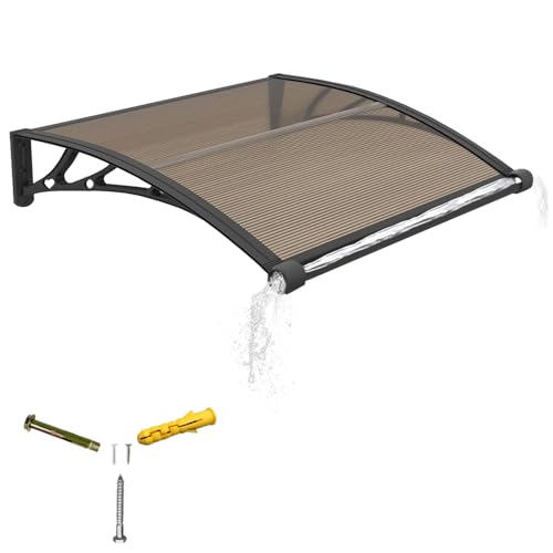 ひさし 雨よけ 後付け 80x100cm 屋根付き ポリカーボネートパネル UVカット/防雨 玄関・テラス・庭用 ひさし 雨よけ 雪対策 排水溝内蔵
