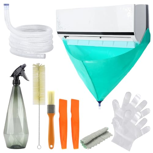 エアコン掃除専用セットで、簡単に徹底洗浄!排水受け付きで便利、壁&床保護のV字カバーや2mホースも。防カビブラシで奥の汚れも除去。冷房・暖房の大掃除にも最適です。