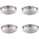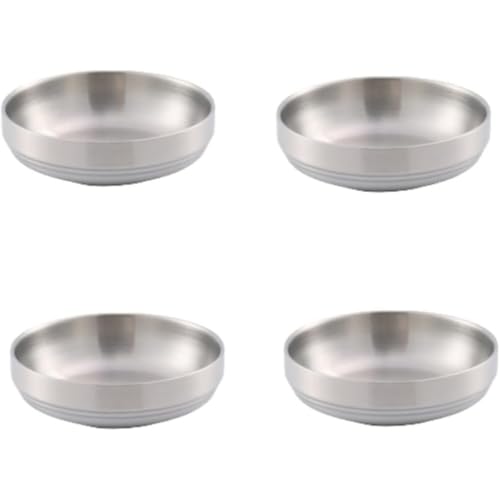 4個セットの韓国風304ステンレス鋼ソース皿。キムチやラーメン用の二重構造ボウルで、保温・保冷機能あり。16cmサイズ、シルバー仕上げ。食器やキッチン用品として最適。