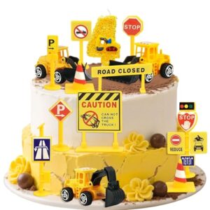 JUYRLE 25個 建設 誕生日パーティー用品 エンジニアリング トラック ケーキデコレーション トラクター ケーキトッパー 道路標識装飾 ミニ建設車両 パーティー記念品 男の子向け