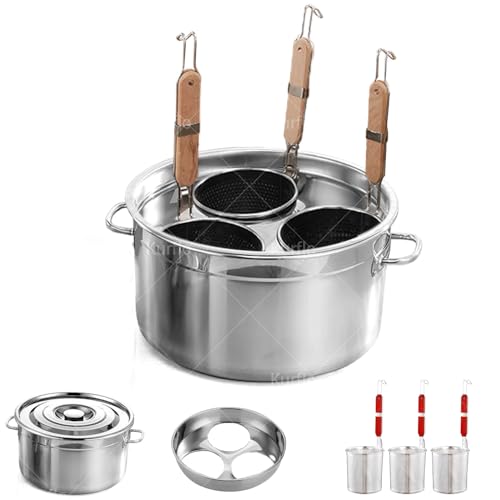 Kurflo 麺料理鍋セット 業務用 店舗用 ラーメン鍋 そば鍋 茹麺鍋セット おでん鍋 多機能 ガス火用 IH対応 ステンレス鋼製 カレー/おでん/ラーメン/うどん/しゃぶしゃぶ用 調理器具 キッチン用品 湯切りザル付 (3ッ切) 高価買取中