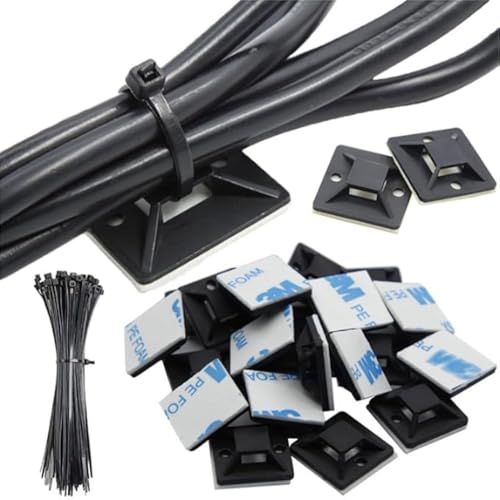 GLOWZEN ケーブルタイ マウントベース ケーブルホルダー 100個セット/3M高粘着 結束バンド ベース (ブラック, 30×30mm)