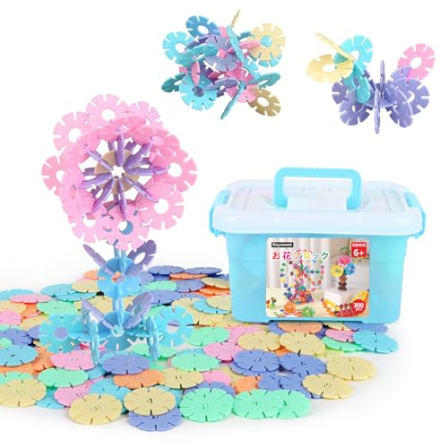 ブロックおもちゃ、300ピースの知育玩具。マカロンカラーの花積み木は子供へのギフトに最適。収納ケース付きで整理整頓も簡単。対象年齢6年以上。