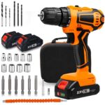 電動ドライバー ドリル 21v 1500mAh バッテリー2個付き。25段階トルク調節、最大32N.m、穴あけ・スピード調節機能。正逆転切替可能で、DIY初心者向けの電動工具セット。収納ケース付き。[並行輸入品]