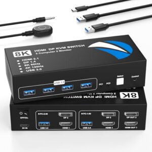 双方向8K USB Cスイッチャーは、2台のコンピューターに対応し、高速100W充電と10Gbpsのデータ転送を実現。マルチデバイス接続に最適です。