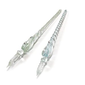 [Innocentia] ねじり ガラスペン (2本セット/箱付き) 透明感と華やかな色合い (ライトピンク×スカイブルー)