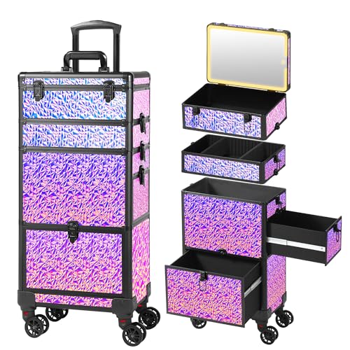 GALHUBIS メイクアップトレインケースは、ミラー付きの引き出しとキャスターが便利な大型オーガナイザー。サロンやネイル、タトゥー専門店にも最適なブラック・カラフルデザイン。