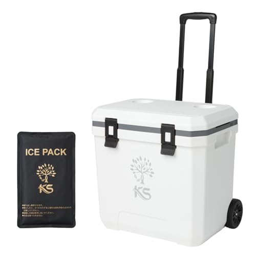 KSクーラーボックス36Lは、全面断熱設計で保冷力抜群。キャスター付きで移動もラクラク。アウトドアやBBQ、釣りに最適。軽量で便利なアイスパック付き。