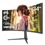 CRUAの34インチ湾曲ゲーミングモニターはUWQHD(3440×1440P)で120Hz、DCI-P3 98%対応。広視野角、HDMI&DP1.4接続、ブルーライト軽減機能、傾斜調整、壁掛け可。