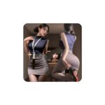 WhimsiNovaのセクシーなOL女教師コスプレ、可愛いミニスカートと肩出しデザイン。4点セットで、ハロウィンやクリスマスの仮装に最適。Tバック付きで、魅惑的な一着。