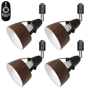 共同照明 4個セット レール用スポットライト E26 SETGD-E26DB-9WCT-4B-Y LED電球60W形付き 調光調色 リモコン付き ブラウン ダクトレールライト 木紋入 北欧 間接照明 照明器具 レール用 ダイニング リビング用 居間用(ブラウン)