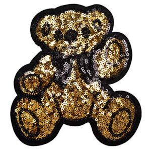 ワッペン 動物 大きい ビッグサイズ スパンコールワッペン アイロン接着 縦14.4cm×横13.5cm くま クマ アップリケ アイロンワッペン 手芸 雑貨 人気 カワイイ