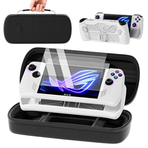 QUAGGYのASUS ROG Ally 2023用キャリーケースバッグは、充電器やアクセサリーに最適。ソフトシリコン保護カバーとスクリーンプロテクター2枚付きで、ポータブルで持ち運びやすいブラックデザイン。