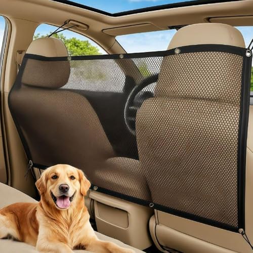 簡単取り付けの自動車ペットバリア。車と犬を守るネットバリア。伸縮性があり、収納バッグ付き。サイズ116 * 76cmで、車用として最適です。