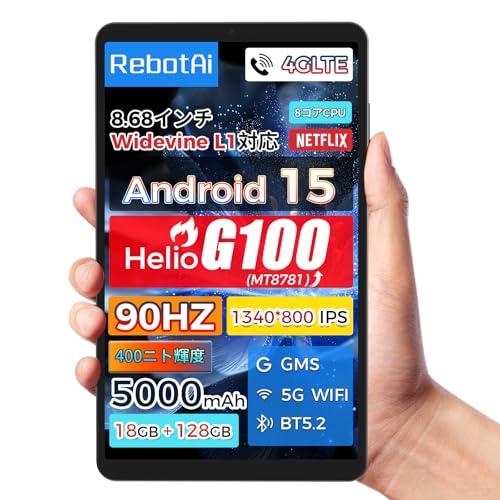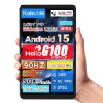 RebotAi タブレットは8インチでHelio G100を搭載。90Hzの高刷新率、18GB RAM、128GBストレージ、1TB拡張可能。4GLTE通話、GPS、5G WiFi、BT5.2対応で、5000mAhバッテリーとPD20W急速充電に対応。
