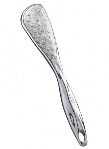 かかとやすりは、粗目と細目の2種類の両面仕様で、角質ケアに最適です。シルバーのデザインで、使いやすさを追求したフットケアアイテムです。真剣に足のケアをしたい方におすすめ。