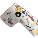 Tuyiutmのゴルフパターカバーは、半円形デザインでスマイリーフェイス模様が特徴。マグネット留めで簡単装着、クラブをしっかり保護します。全体的に白色で、ストレートストリップのスタイルが魅力です。