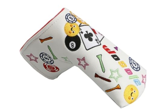 Tuyiutm パターカバー ゴルフヘッドカバー 半円 ストレートストリップ スマイリーフェイスパターン ヘッドカバー マグネット留め クラブ保護カバー (ホワイト,真っ直ぐ)の高価買取ITEM