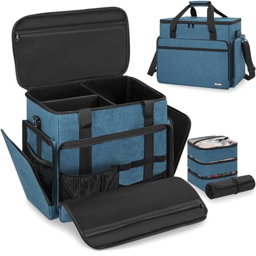 Negrewの化粧バッグは大容量で、3つのコスメポーチとメイクブラシポーチ付き。旅行や出張に最適な多機能デザイン。ブルーの化粧ポーチセット。