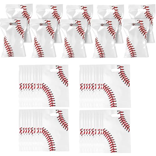 50個入りのパールフィルム包装の野球テーマ誕生日パーティーギフトバッグ。ユニバーサルなデザインで、手持ちが可能。特別な日の贈り物に最適です。