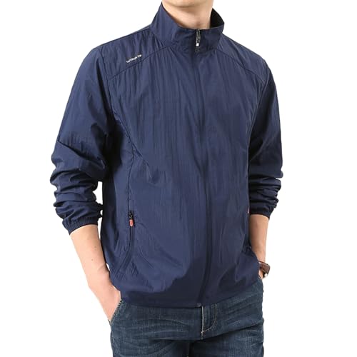 Kayiyasu メンズジャケットは、薄手・軽量のウインドブレーカーで、接触冷感素材を使用。フード付きで日焼け防止、ハイキングや釣りに最適なアウトドア用アウターです。サイズXL(ネイビー2218)。