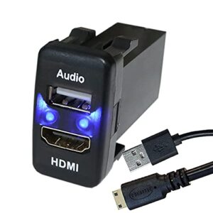 TOYOTA Bタイプ ダイハツ車 オーディオ中継用USBポート HDMI 電源ソケット ミラーリング USB接続通信パネル スマホ充電器 USB電源 スイッチホール LEDブルー トヨタ車系 NEW Audio用 (Bタイプ 21mm×39mm)