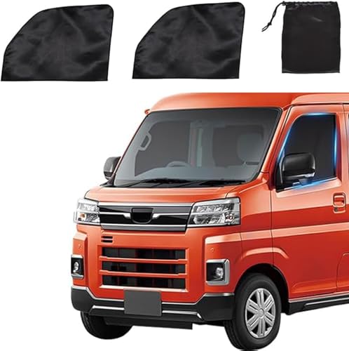 ダイハツ ハイゼットカーゴ アトレー(S700V/S710V)専用のマグネットカーテン。スエード生地で遮光性が高く、運転席/助手席/サイドカーテン/バックドア用の5枚セット。プライバシー保護や日除け、防災に最適。ブラック仕様。