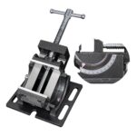 TAKEY アングルマシンバイスは、最大開口80/110mmで左右0-90度回転可能。精密な角度調整ができ、ボール盤やフライス盤での木工作業に最適な卓上万力です。