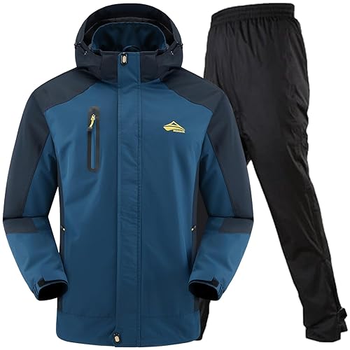 【ベンケ】大雨でも快適なレインウェア。登山や釣り、バイクに最適な上下メンズ用アウトドアジャケット。ネイビーXLサイズ、防水撥水機能付きのマウンテンパーカーとレインパンツセット。