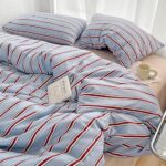 「§zz.luxi」布団カバーセット ダブル 4点セット ins ストライプ シンプル 寝具カバー 洋式・和式兼用 ベッドカバー 掛け布団カバー 韓国 ボックスシーツ 枕カバー シーツカバー 肌に優しい ピーチスキン加工 北欧風 オールシーズン(レッドブルー ダブル 4点セット)の高価買取