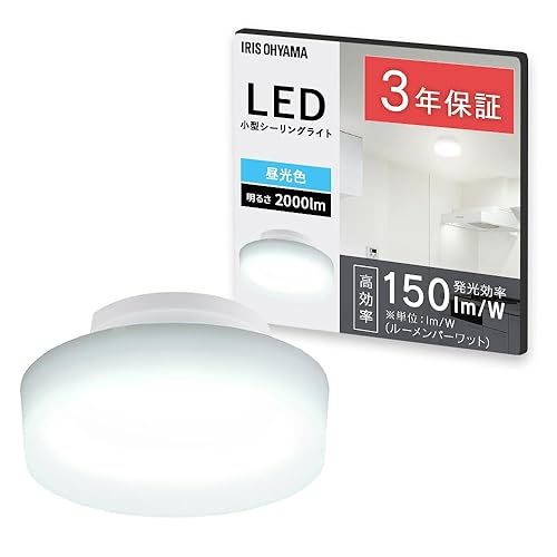 アイリスオーヤマのLEDシーリングライトは、小型で明るさ2000lmの昼光色。玄関、洗面所、キッチン、脱衣所に最適な高効率モデルです。