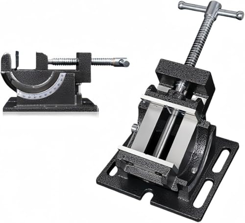 アングルマシンバイスは最大開口110mm、左右0-90度回転で角度調整が可能です。フライス盤や旋盤用の精密バイスで、DIY木工作業に最適です。4インチサイズのブラックデザイン。