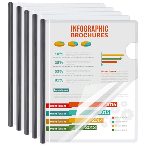 スライドバー付き透明プラスチックフォルダー。A4&レターサイズ用、80シートまで収納可能。学校やビジネスに最適な5パックセット。