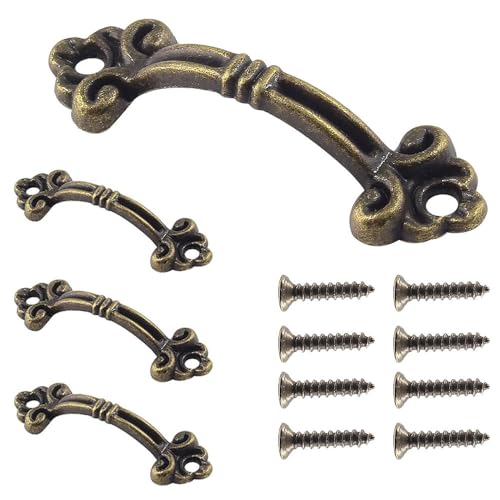 ミニ取手プルハンドル4個セット。亜鉛合金製のアーチ型ボックスハンドル。アンティーク調で引き出しに最適。耐摩耗性と耐久性あり。付属ネジ(47×14mm)付き。