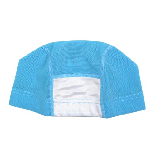 スイムキャップ キッズ 大人向けのメッシュタイプ水泳帽。名前が書けるデザインで、小学生にも最適。3100番、サックスカラー、サイズM。快適な着用感を提供し、水中でもズレにくい。