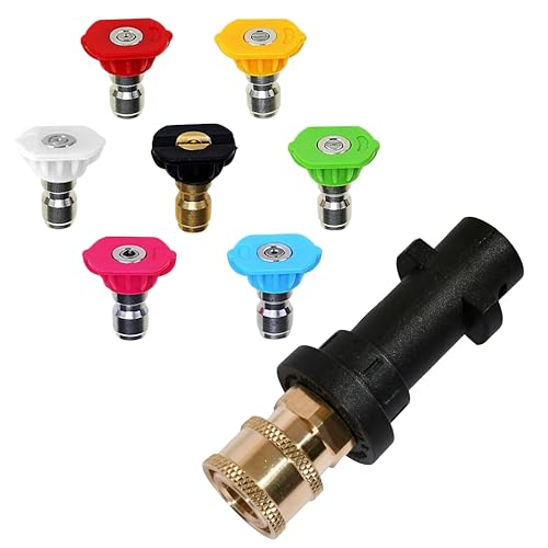 East Leaf 高圧洗浄機 ノズルアダプター セット 1/4インチ ケルヒャー K2-K7対応 7種チップ付 ショートサイズ 洗車 外壁 床清掃の高価買取