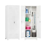 YASICA 物置 屋外 大型 物置 収納庫 屋外 倉庫 室外収納庫 ロッカー 掃除用具収納 キャビネット 物置き台 両開きドア 高さ165cm スチール製 屋外収納 キャビネット 収納ボード・タオル掛け・鍵付き・換気口付き・フック付き 清掃用具入れ 学校/家庭(ホワイト 60x40x165cm) 高価買取中