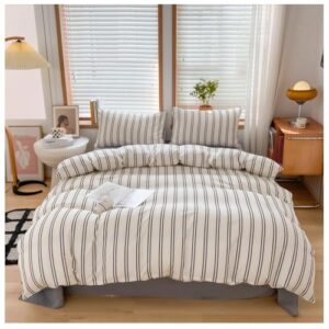 可愛い熊デザインの布団カバーセット。シングルサイズで、掛けカバー、布団シーツ、枕カバーが含まれます。洗濯可能でオールシーズン使用可。
