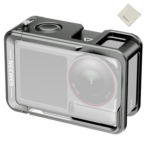 NEEWER アクションカメラケージはOsmo Action 5 Pro/4/3に対応。ビデオリグとして使用可能で、コールドシューや1/4″ネジ、シャッターボタン、クリーニングクロスが付属。磁気アダプターマウント用。