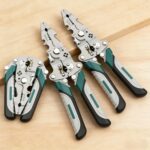 折りたたみ式ワイヤーストリッピングプライヤーは、圧着、切断、レンチ機能を備えた多機能電気技師ツールです。コンパクトなデザインで、収納が簡単です。