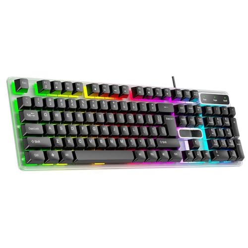 GIUPLFDTGの有線キーボードとマウスセットは、USB接続、99キーの英語配列、RGBバックライト、フルキーアンチコリジョンが特徴です。カラーはブラックとホワイトから選べます。