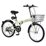 折りたたみ自転車、シマノ6段変速、20インチ、カゴ付き。前後泥除け装備、選べる7色。通勤・通学・街乗りに最適な小径車。