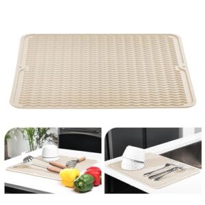 KitchenRaku シンクマット 流し台 シリコン 断熱 滑り止め 水切り 乾燥マット排水 耐熱 流し保護 調理台 シンクライナー 台所 キッチン 食卓 抗菌 耐熱温度230度 (ベージュ, 40*33CM)